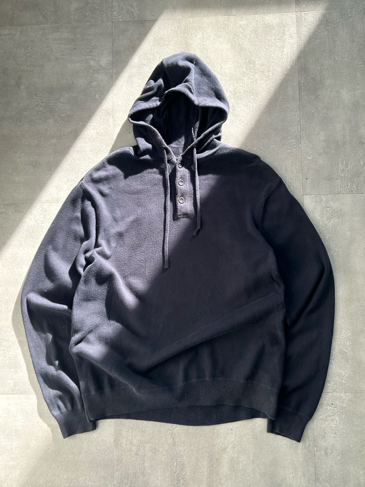 コットンニット生地でハーフボタンフーディ