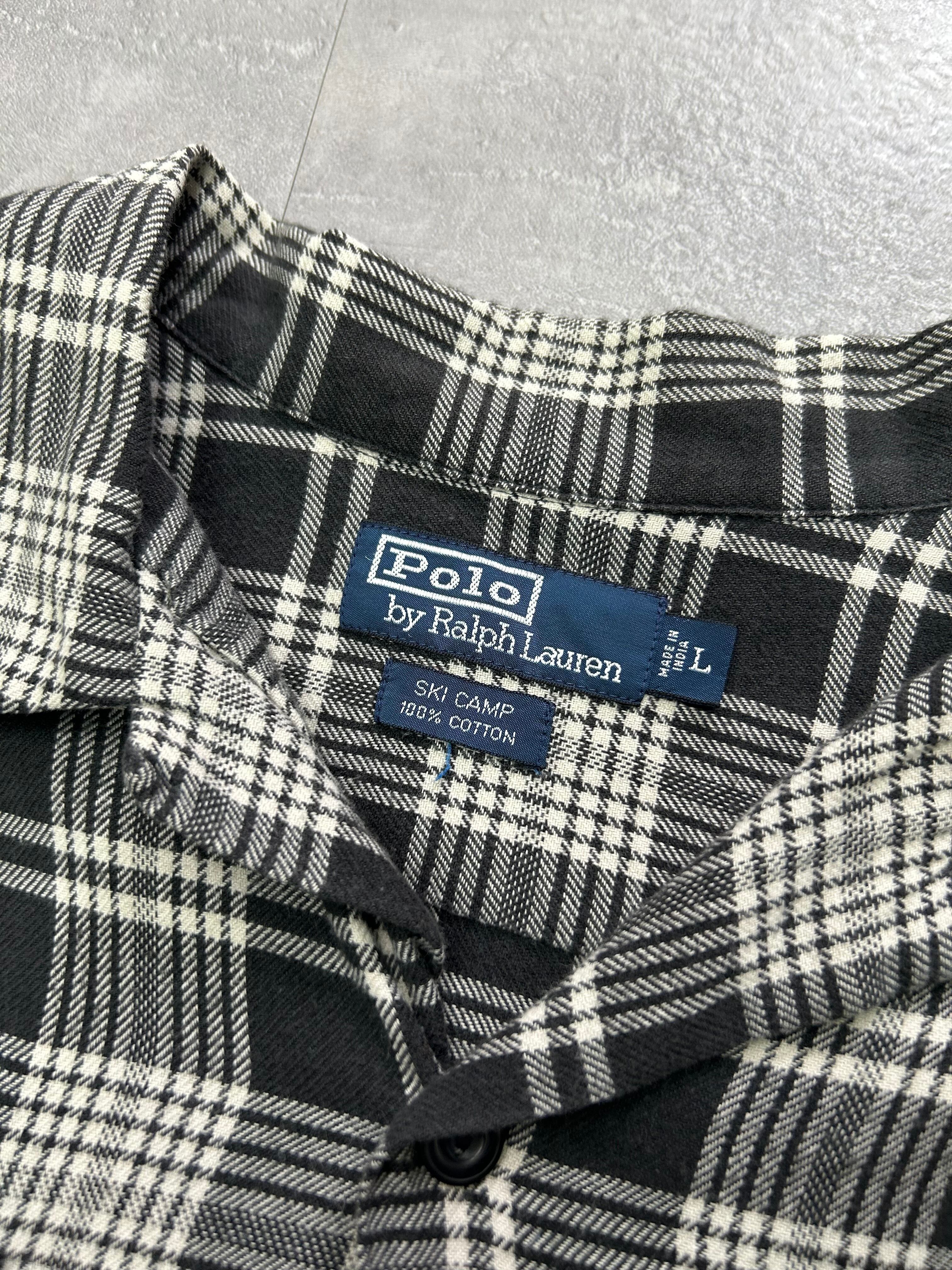 【”Black × White“ 1990s POLO Ralph Lauren ”SKI CAMP“ cotton open collar shirt】